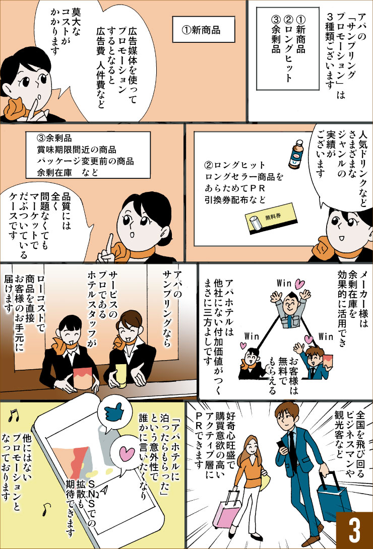 アパリゾートは、ビジネス・出張・旅行・観光・レジャーなど年間2,613万人(※2019年度実績)に上るホテルユーザーの分析を通して、広く業種を超えたプロモーションの情報発信を行ってきました。2003年からは、宿泊者とクライアントを繋ぎ、信頼と好感を生み出す「ホテルサンプリングプロモーション」をプランニングしてきました。