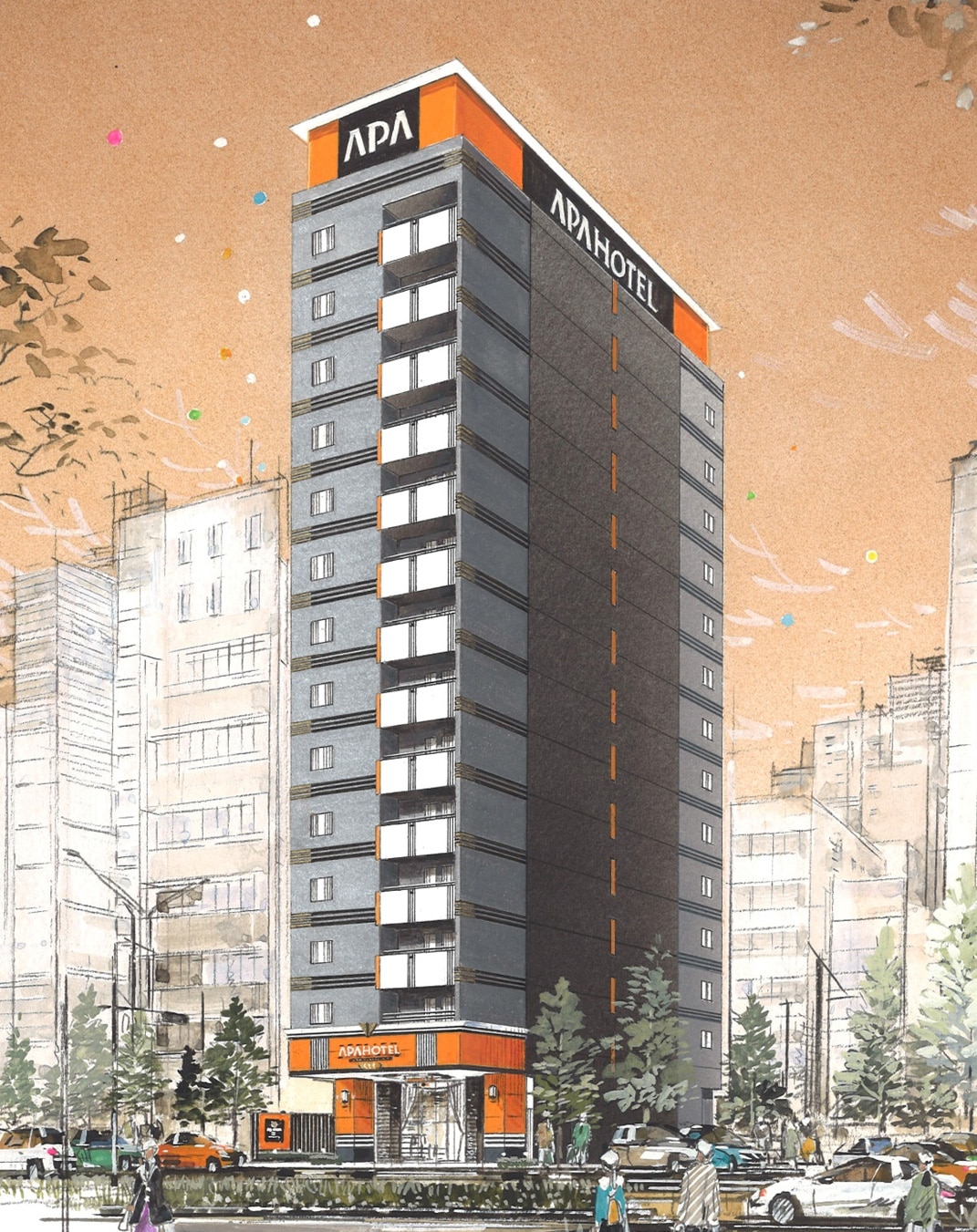 アパホテル〈浅草 蔵前駅前〉完成予想外観パース(パースはイメージであり、外観・色彩・植栽等は実際とは異なります。)