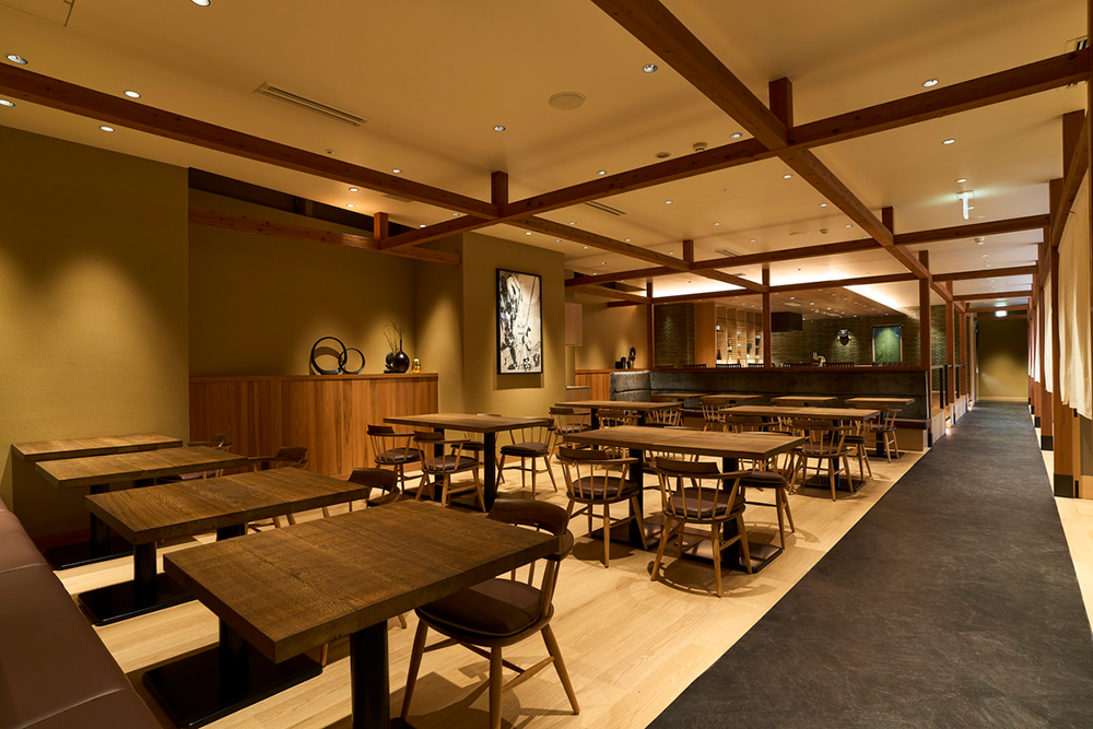 レストランの大規模リニューアルにあたっては、同レストランに至るホテル1階から2階への階段アプローチに、千本鳥居をイメージした朱色の鳥居を設置して幻想的で優美なSNSスポットとしたほか、大型日本酒セラー(北陸の地酒を中心に約40種類の日本酒を常備)を設置したレストラン入口には角打ちコーナー設け、北陸の地酒を小グラスで気軽に楽しむことができる。レストラン店内ではライブキッチンカウンターで揚げるこだわりの天婦羅や地産地消を取り入れた旬の料理を提供し、カウンター席、テーブル席、半個室・VIP個室と多様な用途・ニーズに対応する。