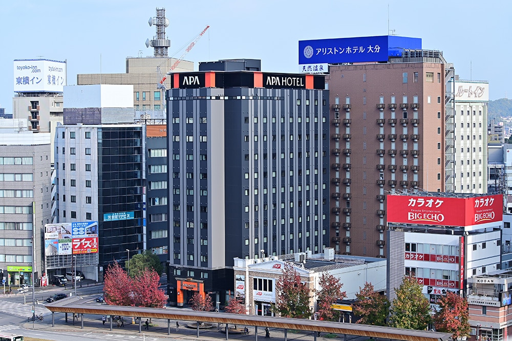 アパホテル〈大分駅前〉は、JR「大分駅」徒歩1分の駅前立地で、全室禁煙。シングルルーム、ダブルルーム、ツインルームといった標準客室のほか、デラックスツインルーム、バリアフリールームなどの部屋タイプを用意。隣り合う客室を繋げて最大4名様で利用できるコネクティングルームも設け、高品質・高機能・環境対応型をアパホテルの理念とする「新都市型ホテル」の最新仕様としている。1階には地元食材を活かしたティーケーピー直営レストラン、最上階には大浴殿・露天風呂、屋上には大分市街を一望できるルーフトップバーを設置している。