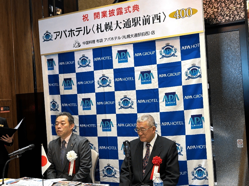 記者発表において、アパグループ社長 兼 最高経営責任者(CEO)の元谷一志は、「北海道エリアには2001年の初進出以来、札幌、帯広、函館、室蘭と展開してきたが、いずれも既存ホテルのリブランドによるものであり、今回、新築ホテルとして最新スペックのアパホテルを札幌にオープンできたことを、非常に感慨深く思う。アパホテルは1ホテル1イノベーションを標榜しており、当ホテルでは、足のサイズに合わせて調整できるアジャストスリッパと、宿泊者が自由に給水できるウォーターサーバーの2つを新たなイノベーションとして導入した。さらに、ホテルの1階には地元の有名店である『中国料理布袋』様にご出店いただいた。今後は当ホテルが起点となって、地域の皆様と共存共栄を図りながら、多くのお客様に愛されるホテルを目指していきたい。」と述べた。
