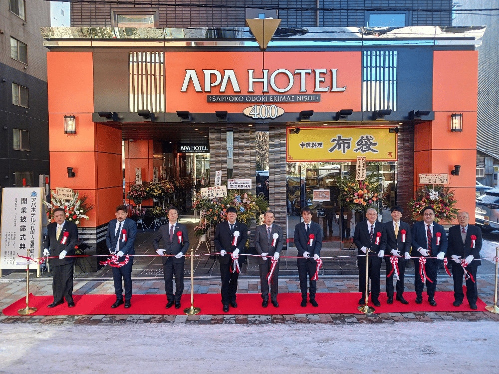 アパホテルネットワークとして全国最大の1,026ホテル・140,923室(建築・設計中、海外、アパ直参画ホテルを含む)を展開するアパホテル株式会社(本社:東京都港区赤坂3丁目2‐3 社長 元谷 芙美子)は、本日12月18日(木)、札幌市内8棟目、新築ホテルとしては北海道初となるアパホテル〈札幌大通駅前西〉(全218室)の開業を迎え、開業披露式典を執り行った。開業に先立ち、12月9日(火)には、抽選で150室(最大300名様)を無料招待する試泊会を実施した。実施にあたり5,795件のご応募をいただき、約38倍の高倍率となった。