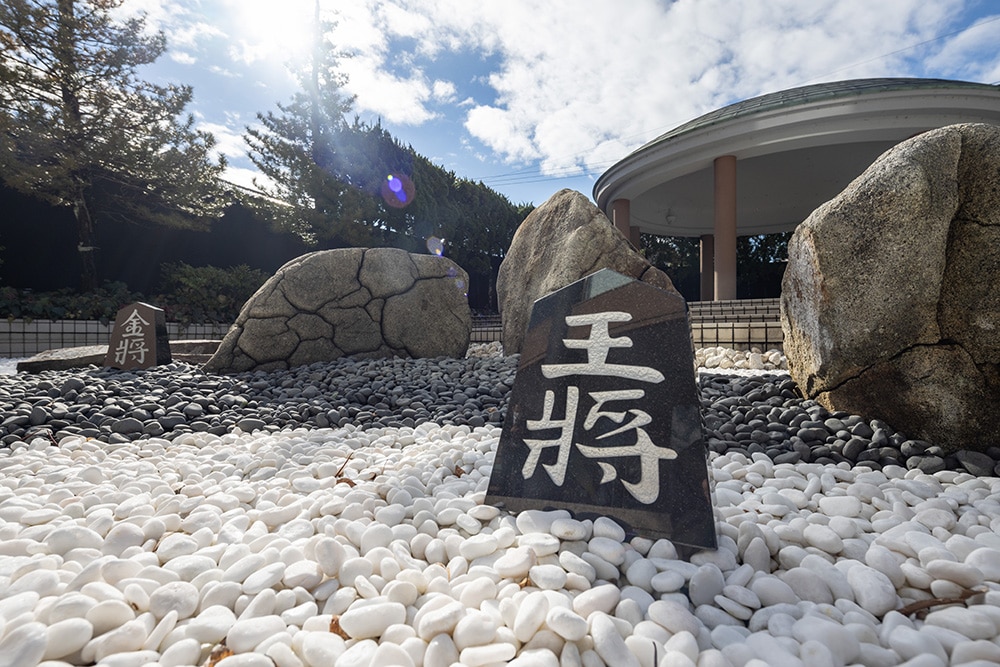石造り将棋駒を配置した枯山水