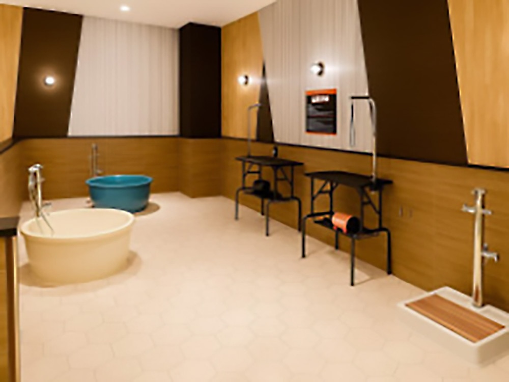 | 利用料金 | 【 宿泊者利用 】 無料(チェックイン日からチェックアウト日まで何度でも利用可能) 【一般(外来)利用】 有料(通常価格1頭1,000円税込) オープン記念価格で6月末まで1頭500円で利用可能! ※屋外ドックランは無料で利用できます。 |