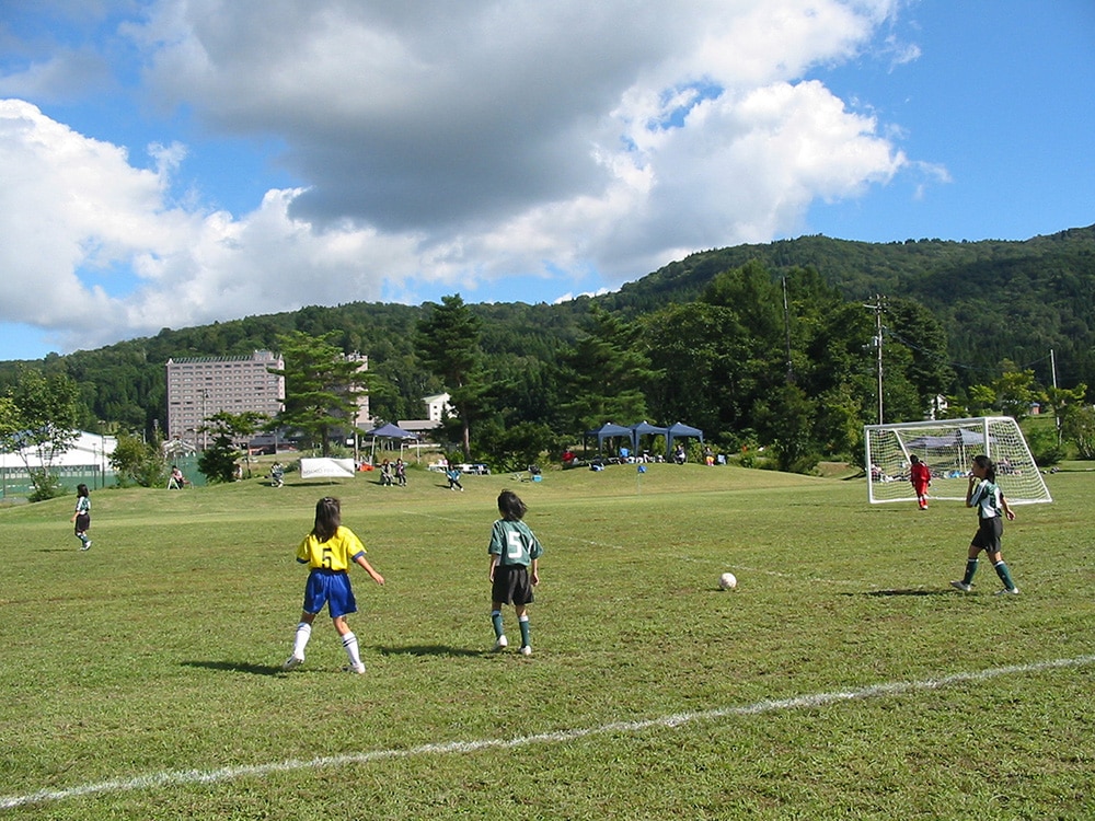 2026シーズン、天然芝グラウンドを1面増床し、「全3面体制」に拡充します。標高600mの清涼な空気の中に広がる天然芝は、サッカーやラクロス等のスポーツ合宿、大会開催に最適なコンディションを提供します。ホテル隣接の利便性に加え、練習後は天然温泉でリフレッシュできる等、アスリートのパフォーマンスを支える環境を整えました。 一方で、新設グラウンドは「宿泊者専用フリーエリア」としても開放。サッカーボールやバドミントン等のレジャー用品を無料で貸し出しており、ご家族やグループで手ぶらで楽しめます。本格的なスポーツ需要に応えつつ、大自然の中で誰もが自由に羽を伸ばせる、贅沢な天然芝フィールドをご体感ください。
