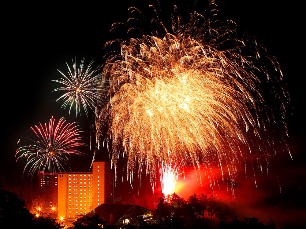 | 打上花火 | 夏休みや連休時には、高原の夜空を彩る打上花火を開催! |