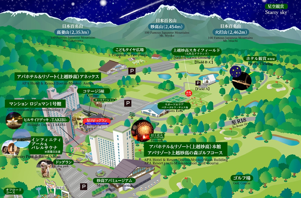 本年はアパグループ創業55周年の節目にあたり、「屋内ドッグラン」の新設や「天然芝グラウンド」の3面体制化など、施設を大幅にアップデートしました。日本百名山である妙高山・火打山・高妻山の絶景を望む高原リゾートとして、ペット連れのお客様からスポーツ団体、個人旅行のお客様まで、多様化するニーズに合わせた感動体験を提供していきます。